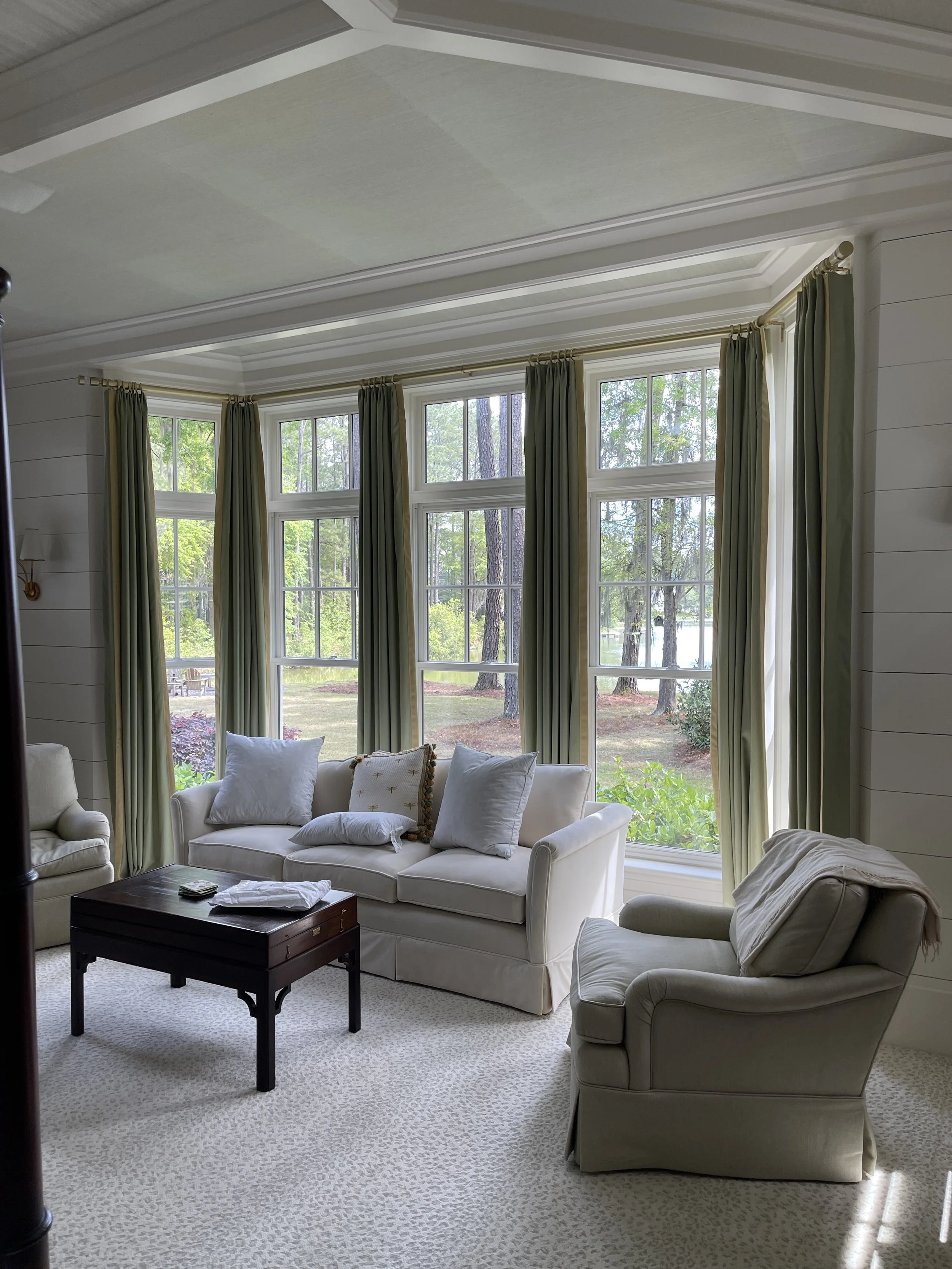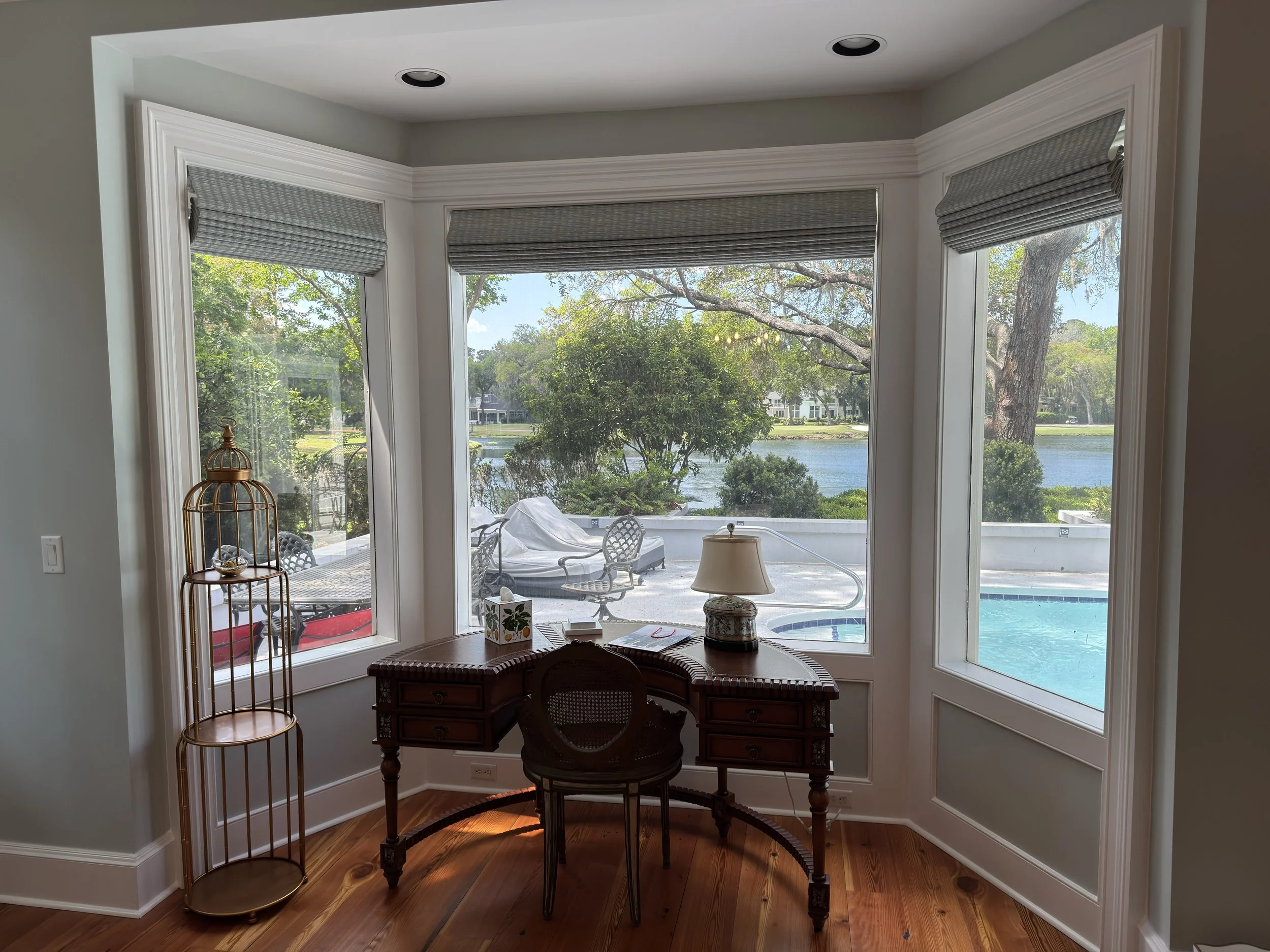 /Bay and bow windows are a striking architectural feature found in many homes throughout Savannah, Bluffton, and the Low Country. Their curved or angular projections add natural light, expansive views, and beautiful character to a space—but when it comes to window treatments, these unique windows often leave homeowners feeling overwhelmed.